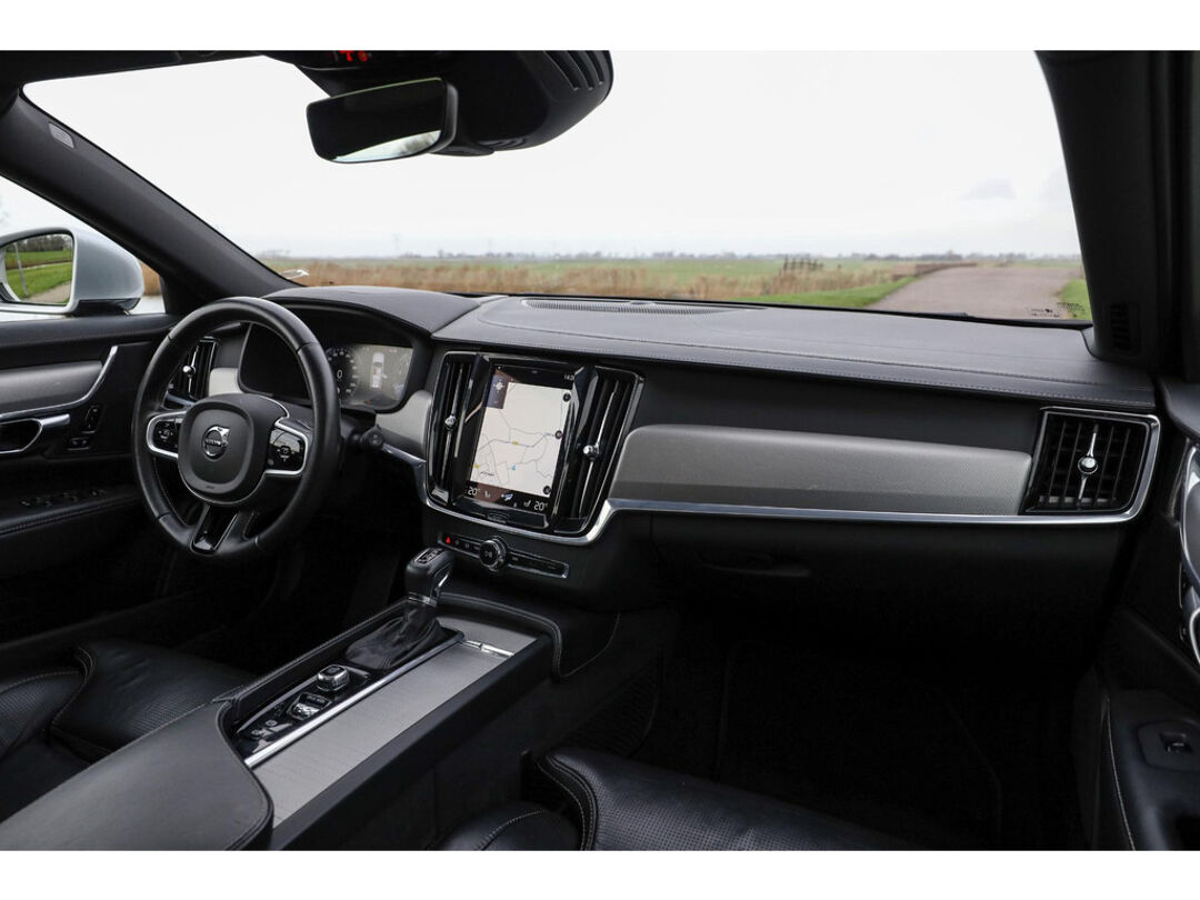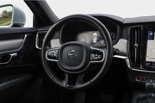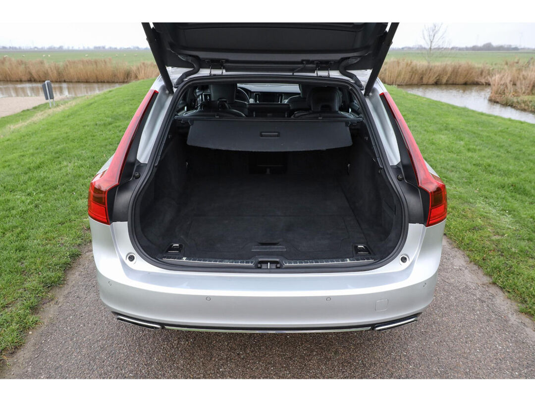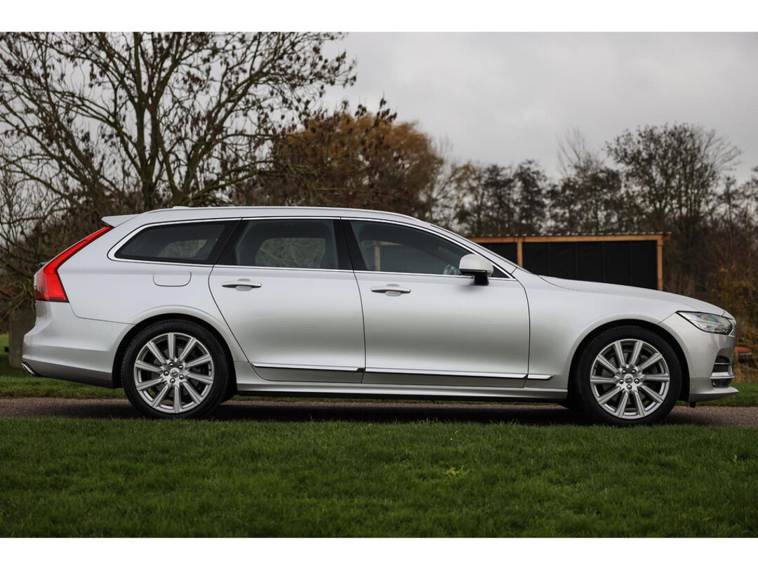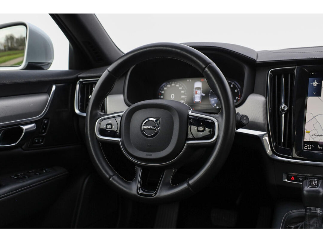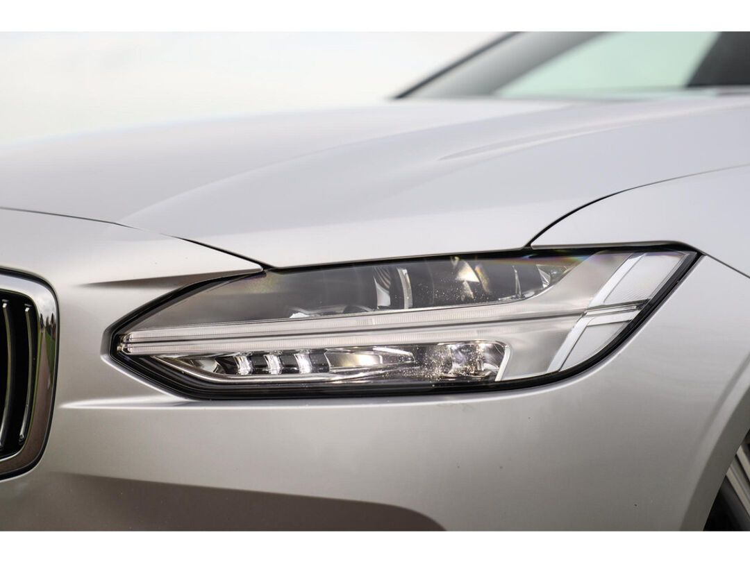 Deze Volvo V90 190 PK Automaat in Bright Silver metallic biedt 19 Inch lichtmetaal, Nappa lederen comfortstoelen, panoramadak en een elektrisch bedienbare achterklep. De auto is uitgerust met stoelventilatie, massagefunctie, Head-up Display, digitaal instrumentenpaneel en CarPlay/Android Auto. Verder aanwezig: dodehoekdetectie en parkeersensoren. Kilometerstand 121.575 km.