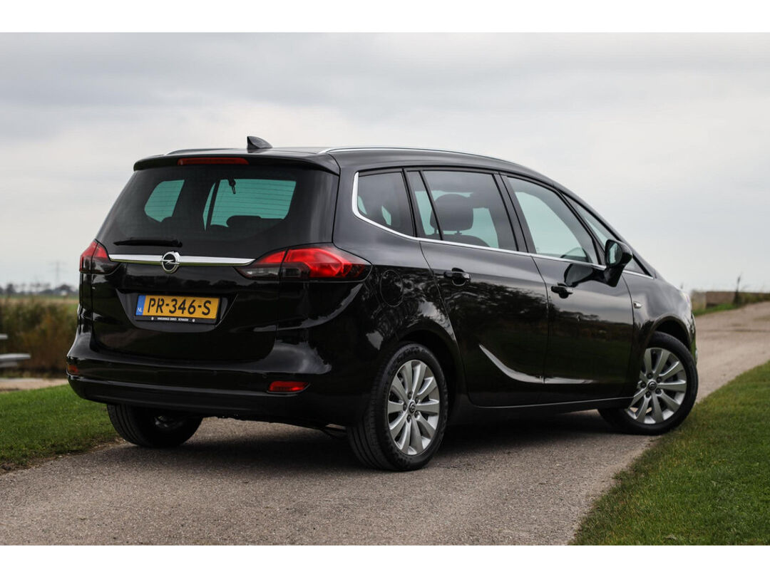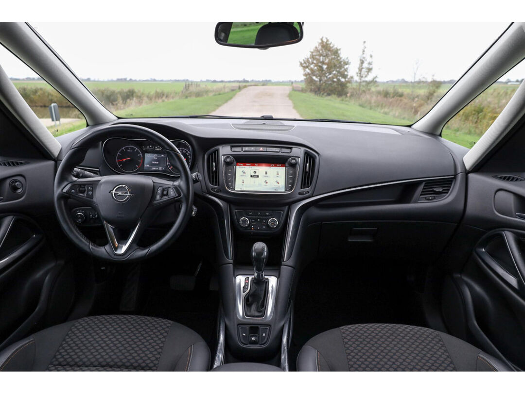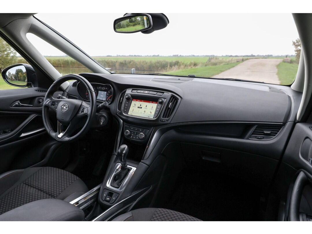 Deze Opel Zafira 1.4 Turbo Automaat uit 2017 is uitgevoerd in glanzend zwart metallic, biedt ruimte aan zeven personen en is uitgerust met navigatie, achteruitrijcamera en diverse luxe opties.