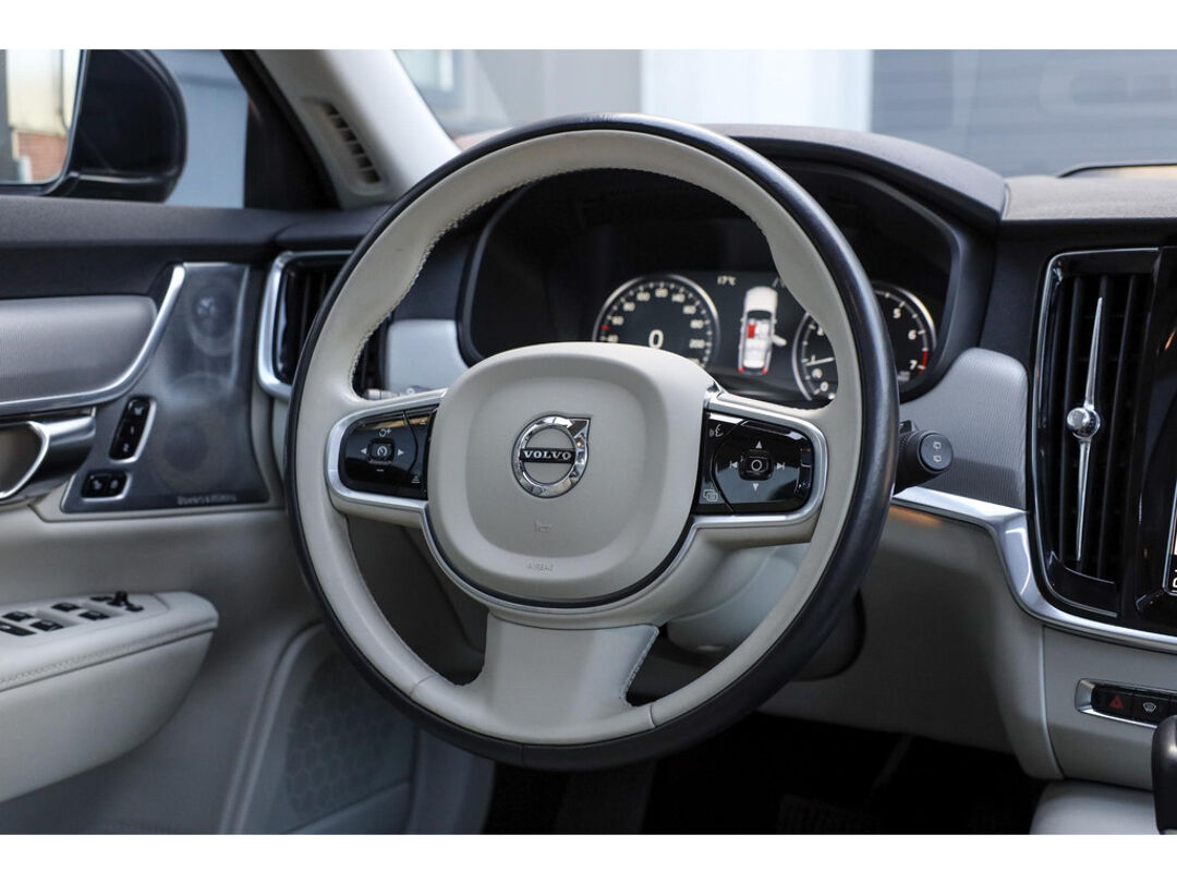 Deze Volvo V90 T5 Luxury Line uit 2017 is uitgevoerd in Magic Blue metallic met Nappa lederen interieur en een zeer complete uitrusting. Met highlights als Bowers & Wilkins audio, panoramadak, ventilatie- en massagezetels, head-up display en Intellisafe rijhulpsystemen is dit een premium stationwagon met luxe én veiligheid. Bovendien geschikt voor 1.800 kg trekgewicht.